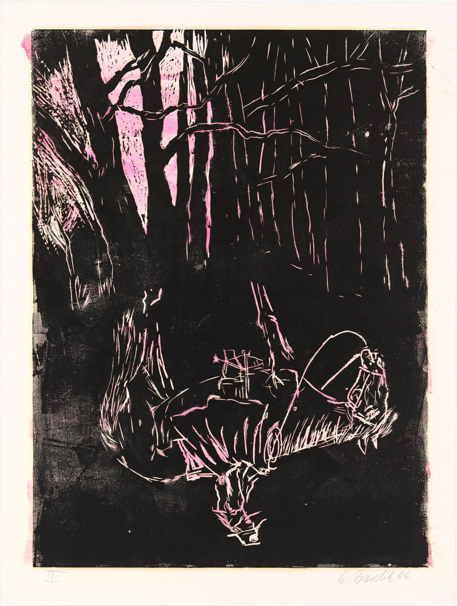 Anche nella grafica ritroviamo uno dei gesti più noti e radicali introdotti dall’artista: il capovolgimento delle figure, che a partire dal 1969 diventa un principio strutturale del suo lavoro.
