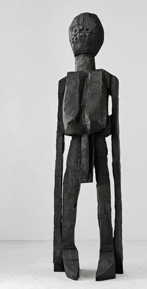 Nella scultura Baselitz trova un mezzo particolarmente diretto, meno mediato dall’ “artificio” della pittura e quindi più vicino alla dimensione fisica e concreta della materia. Il legno, materiale privilegiato di queste opere, viene lavorato con strumenti come motoseghe, asce e scalpelli, che incidono la superficie lasciando tracce evidenti del processo di lavorazione.