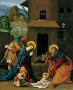 Ludovico Mazzolino – Adorazione del Bambino con San Giovannino (1526), Collezione Grimaldi Fava