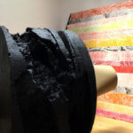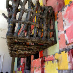 “Palle di natale giganti”, molto colorate, che accompagnano dall’esterno il visitatore e contrastano con la struttura neoclassica del padiglione, all’interno megalitiche colonne imballate che arrivano a toccare il soffitto, coni rossi giganti ed oggetti a volte riconoscibili si alternano a strutture puramente di fantasia.