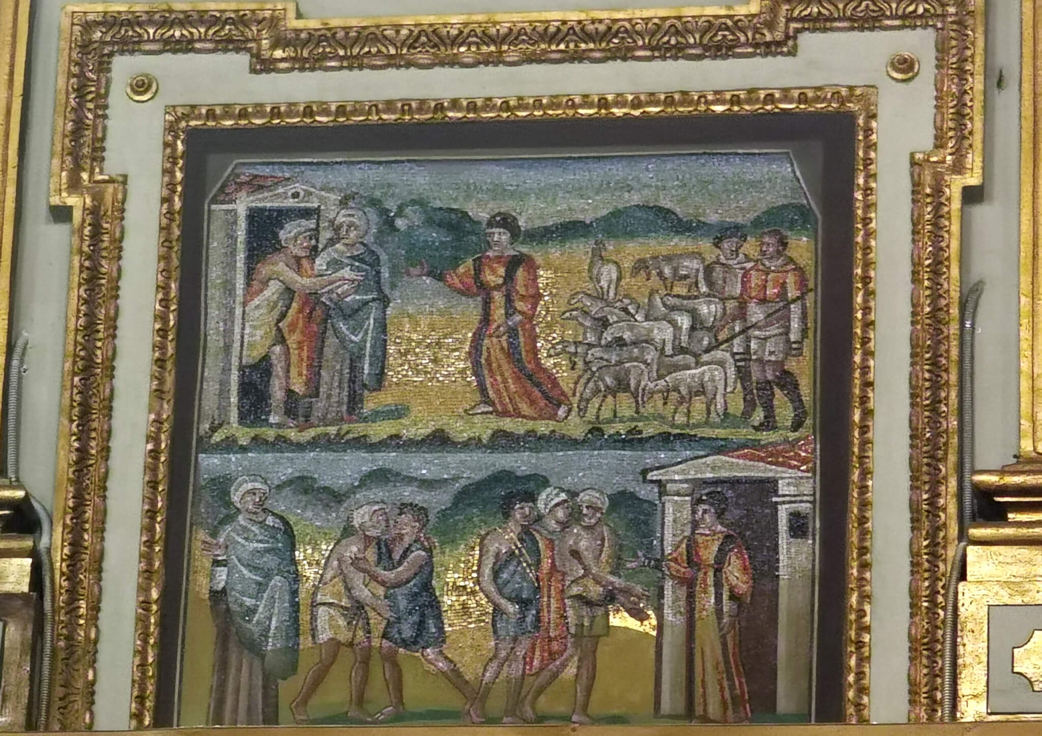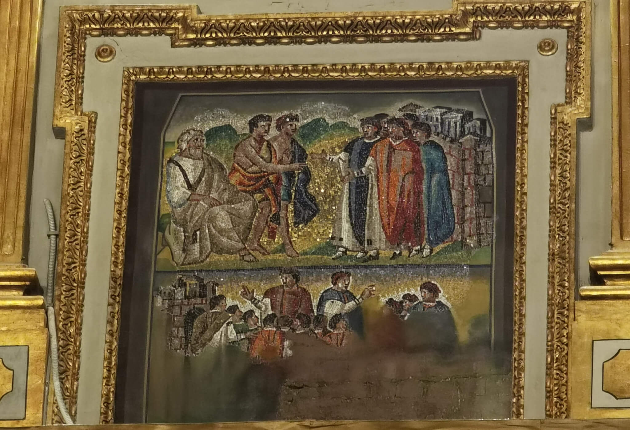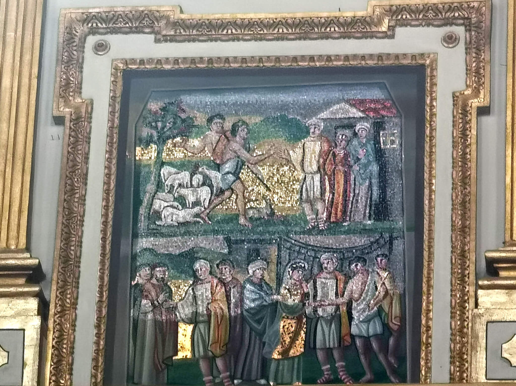 Questi mosaici, proprio per la loro epoca, sono ancora i mosaici dell’antichità. In una parola, raccontano non rappresentano. Ci raccontano fatti, storie. I personaggi interagiscono, vivono. Non rappresentano staticamente se stessi e il loro ruolo, divino o umano che siano.