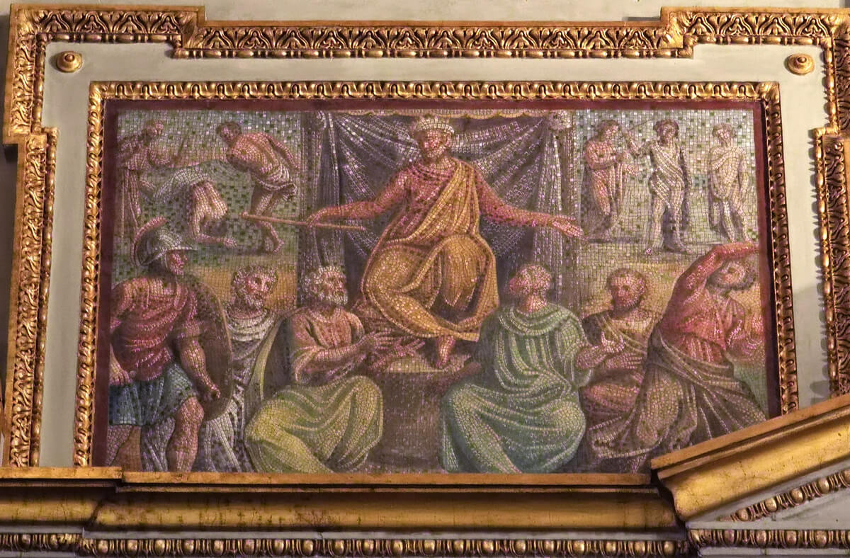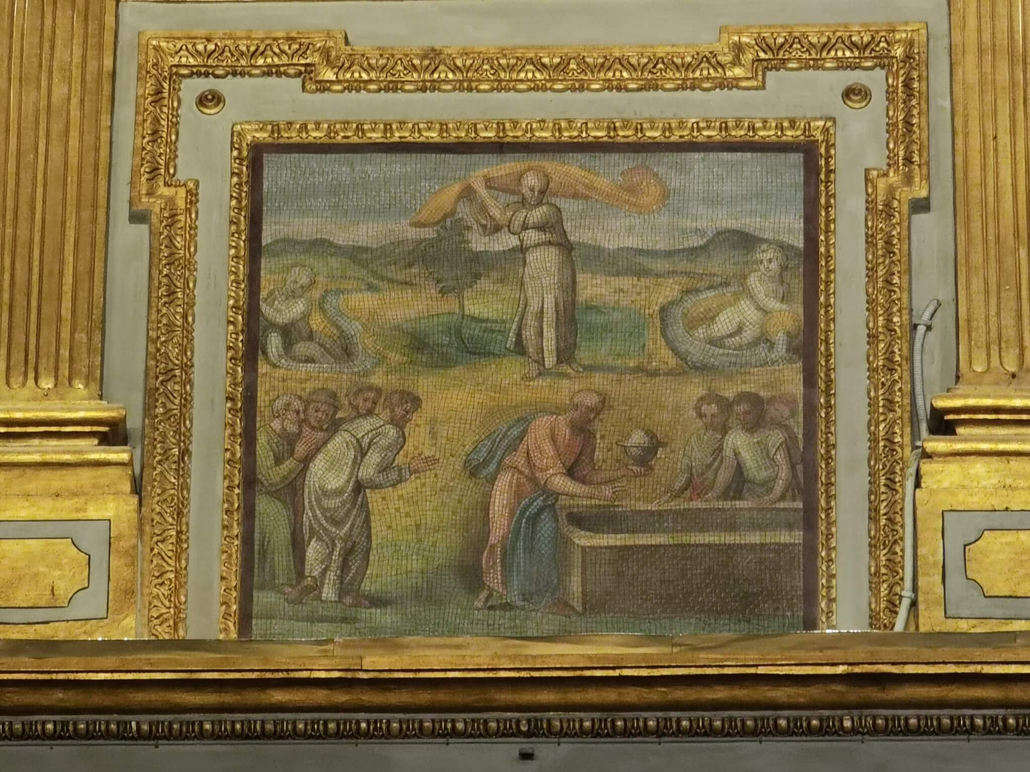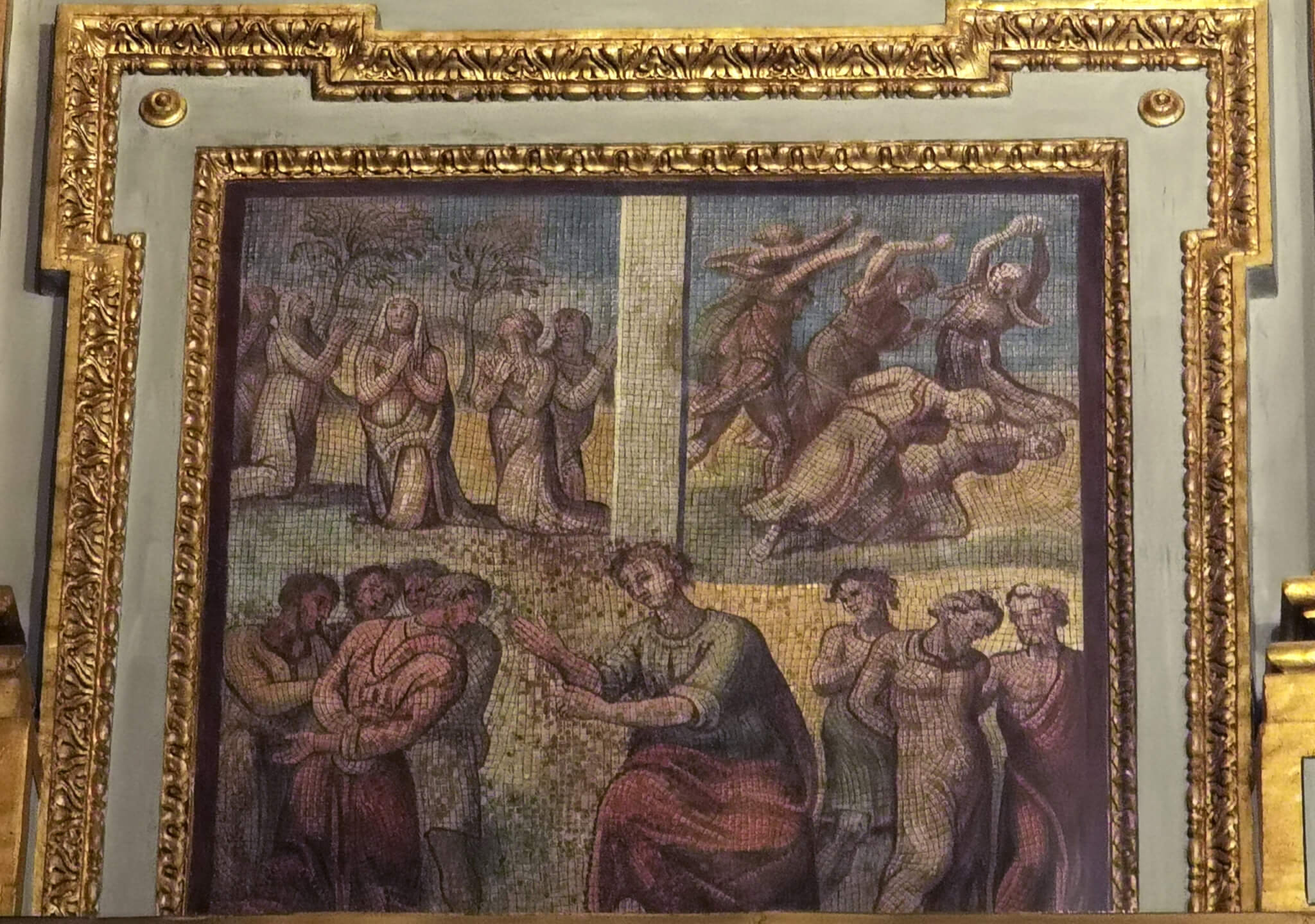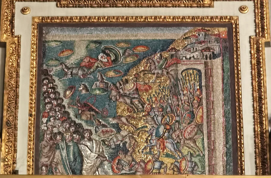 Al termine dell’articolo troverete l’elenco dei pannelli musivi componenti il ciclo e nella photogallery la foto di (quasi) tutti con l’indicazione della posizione.