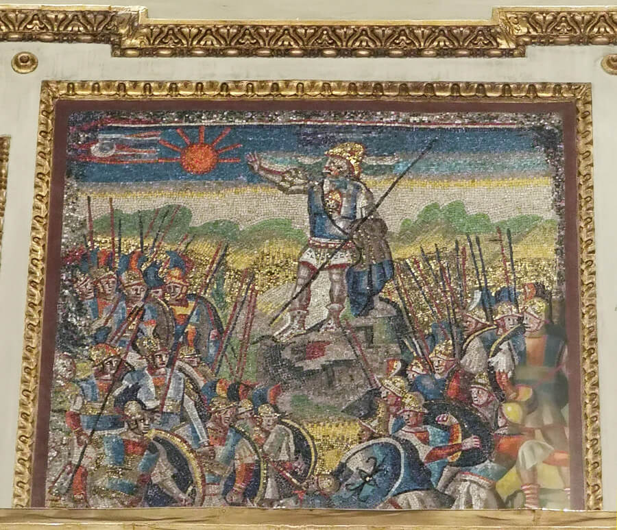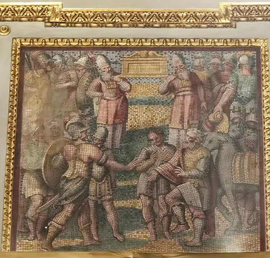 - D13 I cinque re amorrei assediano Gabaon e i Gabaoniti che chiedono aiuto a Giosuè. Basso, apparizione del Signore a Giosuè e Giosuè soccorre Gabaon (Gs 10,5-9)