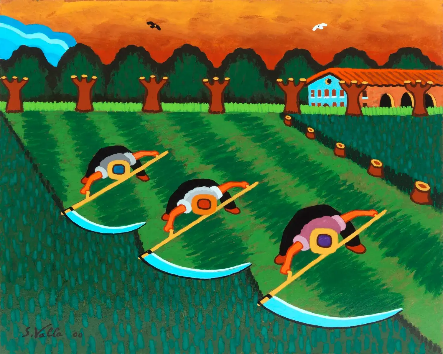 In occasione della mostra, l’opera Vangatore (1992) entrerà, infatti, nella collezione permanente di Palazzo Sartoretti, dove sono già presenti tre dipinti di Serafino Valla.
