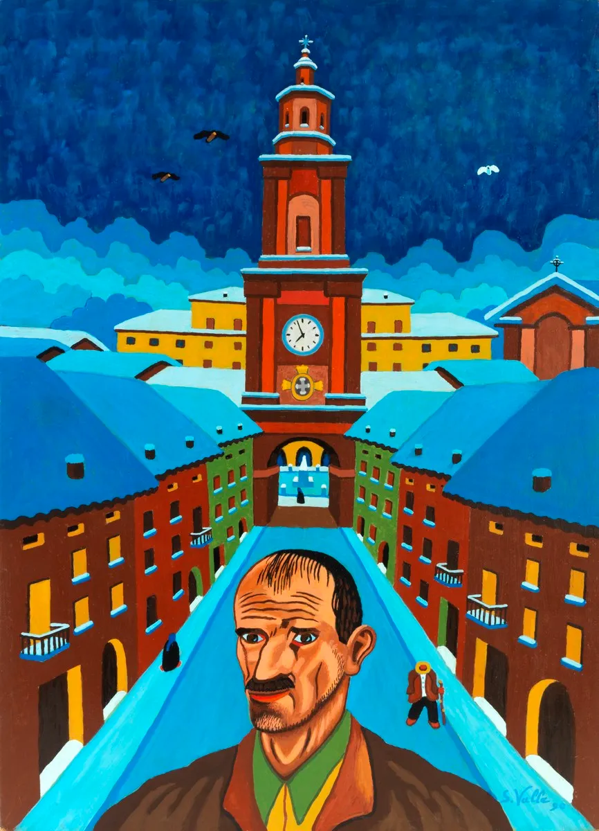 “Serafino Valla – scrive Giammarco Puntelli – non è solo un pittore naïf nel senso tradizionale del termine, è un pensatore, un poeta del colore, capace di orchestrare una narrazione visiva che abbraccia la condizione umana nella sua totalità: i suoi bisogni, le sue paure, le sue speranze, i sogni e le fatiche, e quella “volontà di connessione” che, come lui stesso ci ha dimostrato, rappresenta il filo conduttore della nostra esistenza”.
