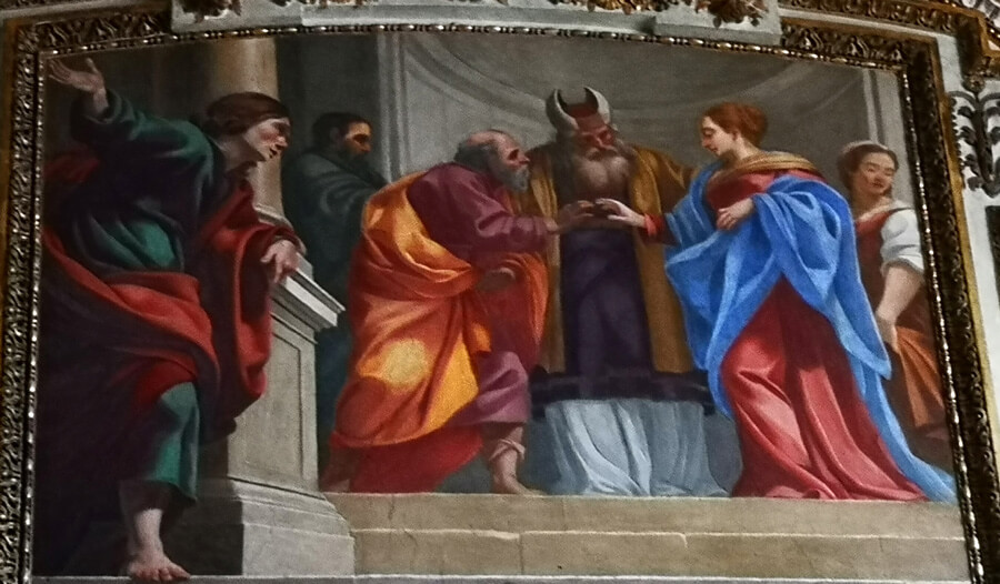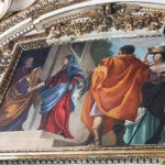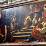 Ogni chiesa di Roma ha i suoi tesori e San Lorenzo in Lucina, oltre alla Crocifissione di Guido Reni sull’altare maggiore può vantare una cappella opera di Simon Vouet (1590-1649) con (anche) due grandi tele: la Tentazione di San Francesco e San Francesco rinuncia ai beni del padre.